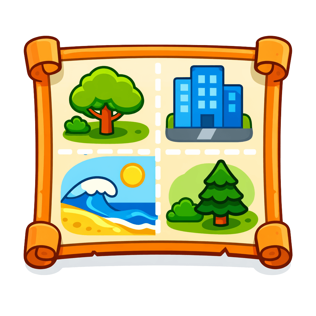 Park, Miasto, Plaża lub Las — każda uczy innej operacji matematycznej.